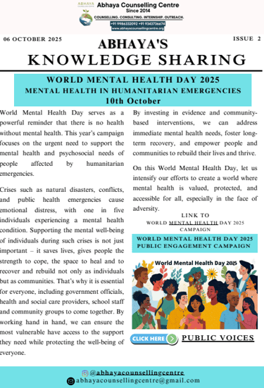 This World Mental Health Day, we at Abhaya Counselling Centre reaffirm our commitment to creating a world where every mind feels seen, supported, and valued.
